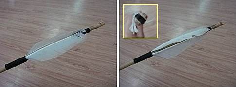 如果一支没有翎羽的箭被射出去,你会看到箭支在空中扭动的像拉拉队的指挥棒一样抖动。一支箭在空中飞行的时候,尾端的羽毛会形成一个很小的阻力,就像是一根羽毛被拖着划过空气一样。当箭的前一部分开始不稳定时,尾部的羽毛产生的阻力将箭支稳定下来。